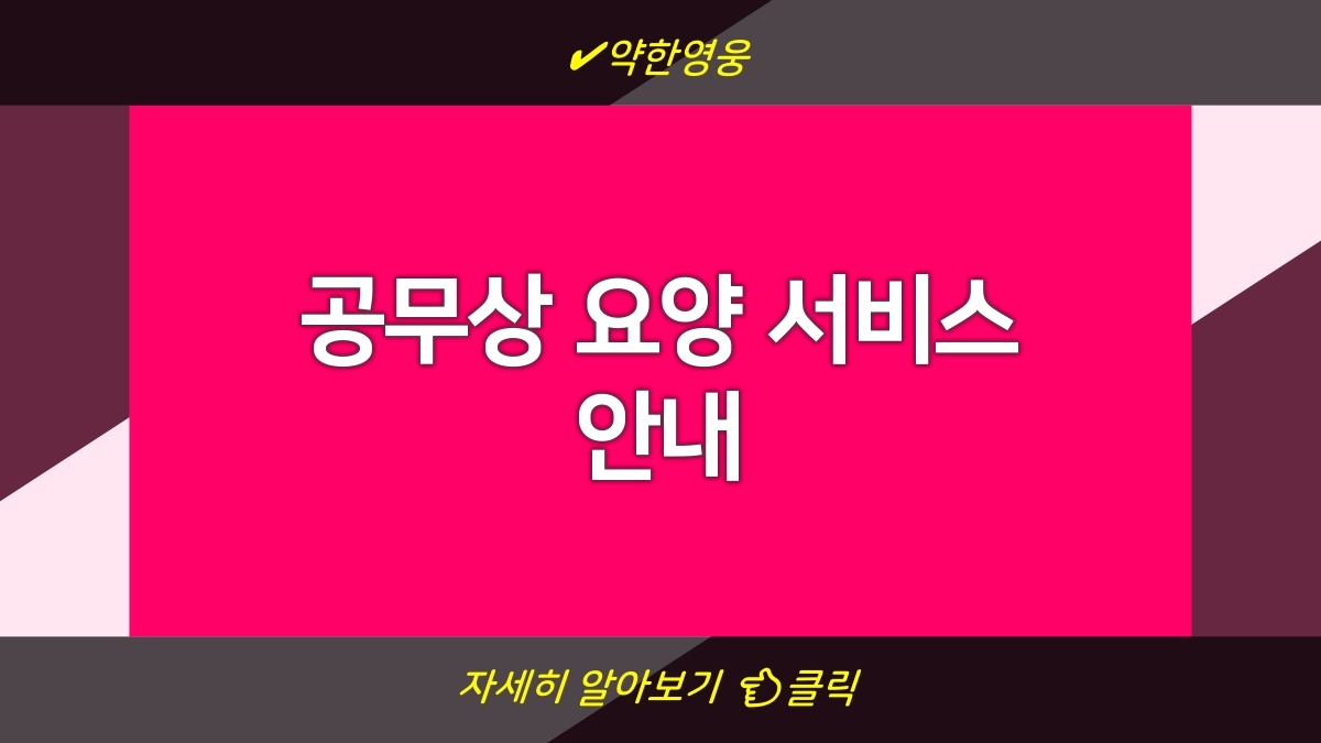 공무상 요양 서비스는 공무원들에게 정말 중요한 복지 제도야. 업무 중 발생한 질병이나 부상으로부터 안전하게 회복할 수 있도록 도와주고, 가능한 한 빨리 일상으로 복귀할 수 있도록 지원해줘. 이 서비스의 혜택을 잘 활용하면 공무원으로서의 삶도 더 나아질 수 있어. 필요할 때 잊지 말고 신청하면 좋겠어. 서비스 혜택을 제대로 누리려면 꼭 확인 후 신청하길 바라!
