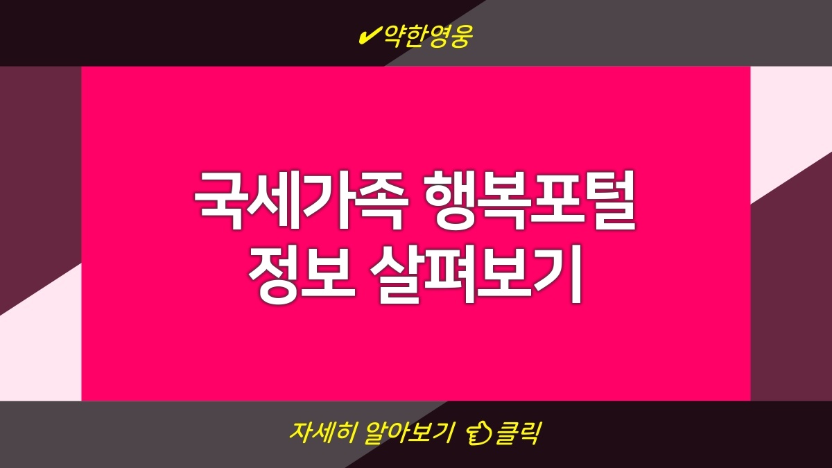 국세가족 행복포털은 국세청이 제공하는 다양한 서비스를 한곳에서 이용할 수 있는 플랫폼이야. 여기서는 가정의 세무 관련 내용을 쉽게 접근할 수 있도록 도와줘. 이 포털을 통해 세금 신고, 관리, 상담 서비스 등을 제공받을 수 있어. 그리고 가족 단위의 정보와 필요에 따라 맞춤형 서비스를 이용할 수 있어 정말 편리하다고 생각해. 다양한 기능이 있으니 꼭 확인해보길 바래.