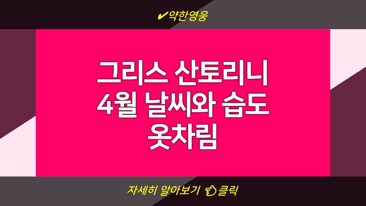 4월의 그리스 산토리니는 여행하기에 이상적인 날씨를 자랑합니다. 이 시기 평균 기온은 온화하며 습도는 꽤 안정적인 편입니다. 산토리니의 아름다움은 맑은 하늘 아래 더욱 빛을 발하게 되며, 햇살을 받으며 걷는 것만으로도 기분이 상쾌해집니다. 여행 계획 시 날씨와 습도를 고려하여 적절한 옷차림을 준비하면 더욱 즐거운 여행이 될 것입니다.