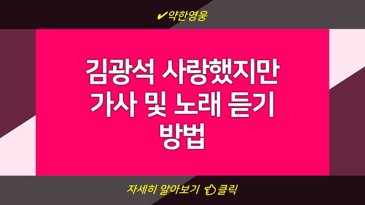 김광석의 '사랑했지만'은 감성적인 가사와 함께 많은 사람들에게 사랑받는 곡임. 가사의 뒷이야기를 알고 있으면 듣는 재미가 더해진다고 생각함. 이 노래는 가슴 아픈 사랑의 기억을 떠오르게 하는데, 그 감정에 많은 사람들은 공감할 수 있을 거임. 노래를 듣는 방법은 유튜브에서 간단하게 가능하고, 가사를 확인하며 감상하는 걸 추천함. 간혹 사랑에 관한 노래는 우리가 느끼는 복잡한 감정을 잘 표현해줌.