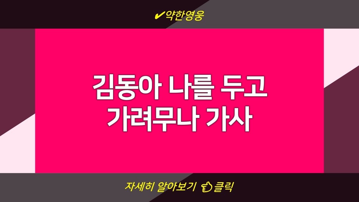 김동아의 "나를 두고 가려무나"는 아쉬운 사랑에 대한 감성을 담은 노래야. 이 노래는 고전적인 멜로디와 함께 깊이 있는 가사가 특징이야. 많은 사람들이 이 노래를 듣고 공감했을 거라 생각해. 이 곡은 다양한 해석이 가능하고, 특히 이별의 슬픔과 그리움을 잘 표현하고 있어서 더욱 매력적이야. 노래의 감성을 느끼고 싶다면 꼭 들어보길 추천해. 진짜 좋음.