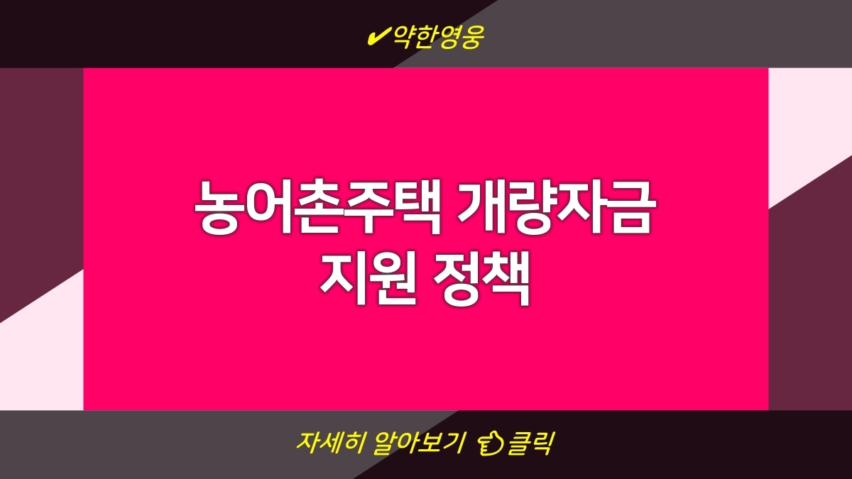 농어촌주택 개량자금 지원은 정말 필요한 정책이지. 이 지원을 통해 더 많은 농어촌 주민들이 안전하고 쾌적한 집에서 사는 데 큰 도움이 되겠어. 그리고 주거 환경이 개선됨에 따라 농어촌 지역 자체의 발전까지 기대할 수 있지. 꼭 지원을 받아보길 추천해.