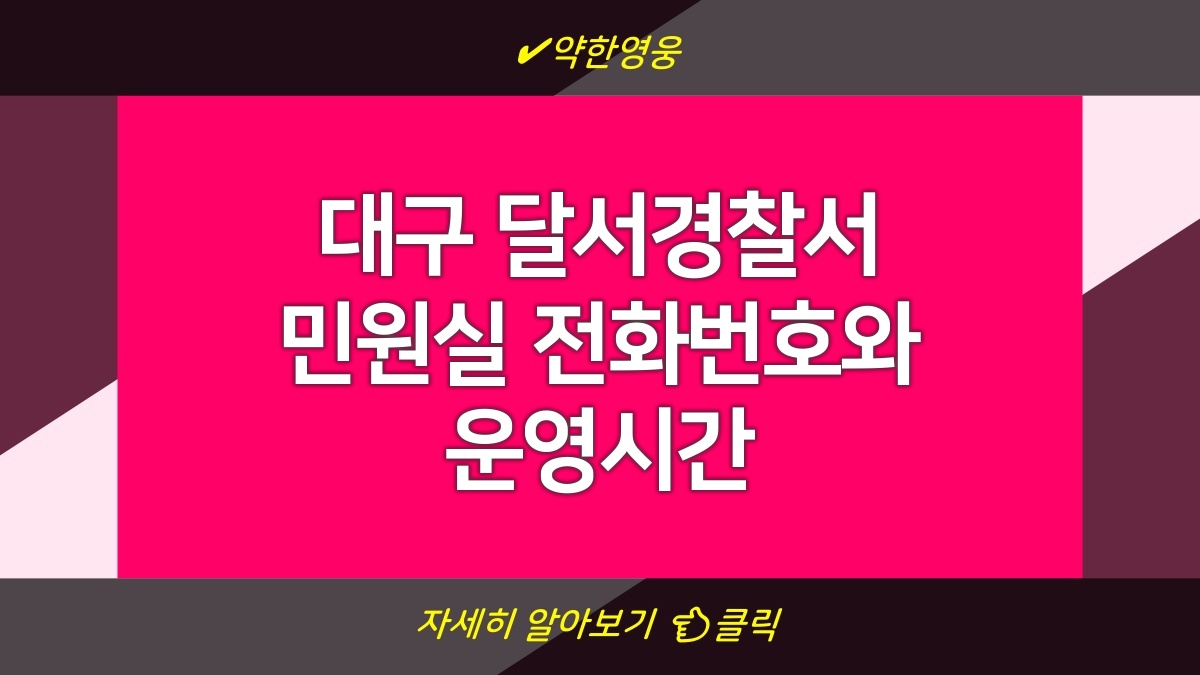대구 달서경찰서 민원실에 필요한 정보를 정리해봤어. 전화번호, 운영시간, 위치를 잘 확인하고 방문하면 많은 도움이 될 거야. 궁금한 점 있으면 언제든지 전화로 문의해도 되고, 직접 방문해도 되니까 걱정 말고 가봐. 소중한 민원 해결하러 가보자.