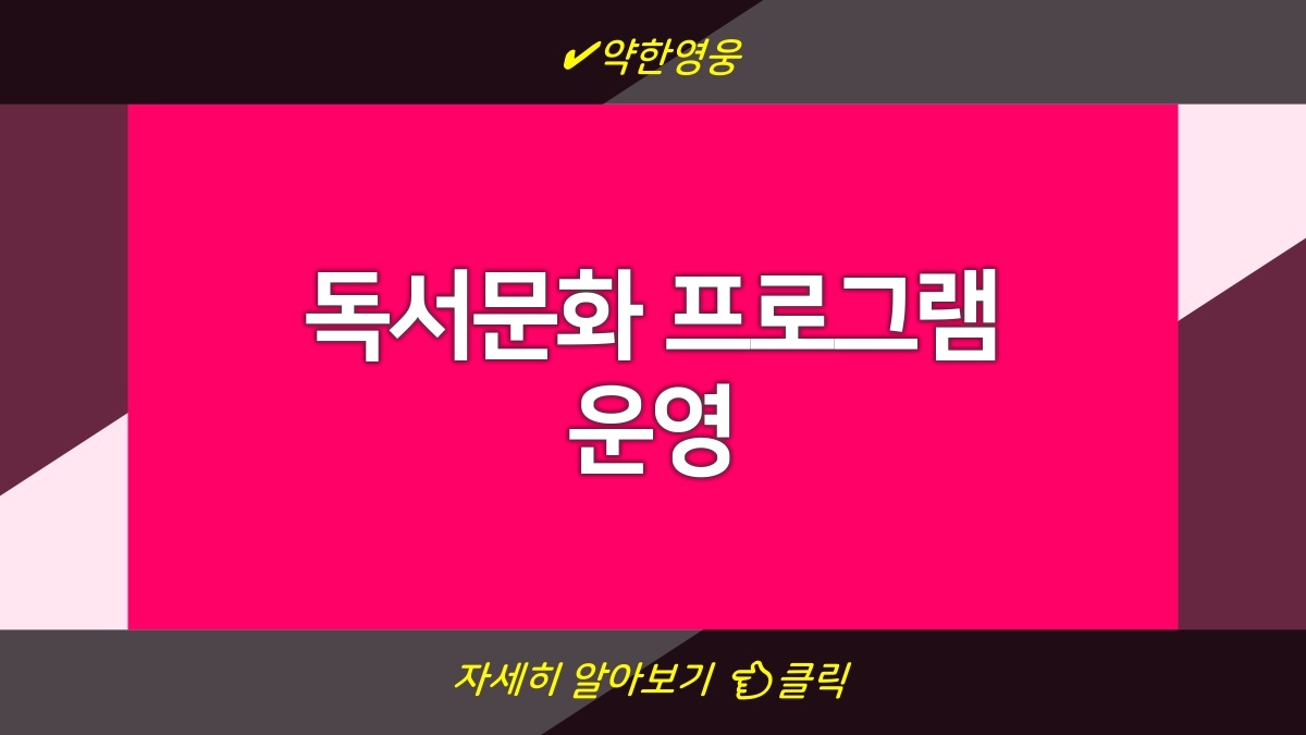 이번 독서문화 프로그램은 독서의 중요성을 다시 알려주기 위해 마련된 거임. 독서를 통해 다양한 지식과 경험을 쌓을 수 있는 기회를 제공하는 프로그램이야. 이 프로그램은 누구나 참여할 수 있고, 다양한 독서 관련 활동이 준비되어 있어. 독서뿐만 아니라 여러 참여 방법과 활동들이 있으니 많은 관심 부탁해. 독서가 주는 혜택을 누려보면 좋겠어.