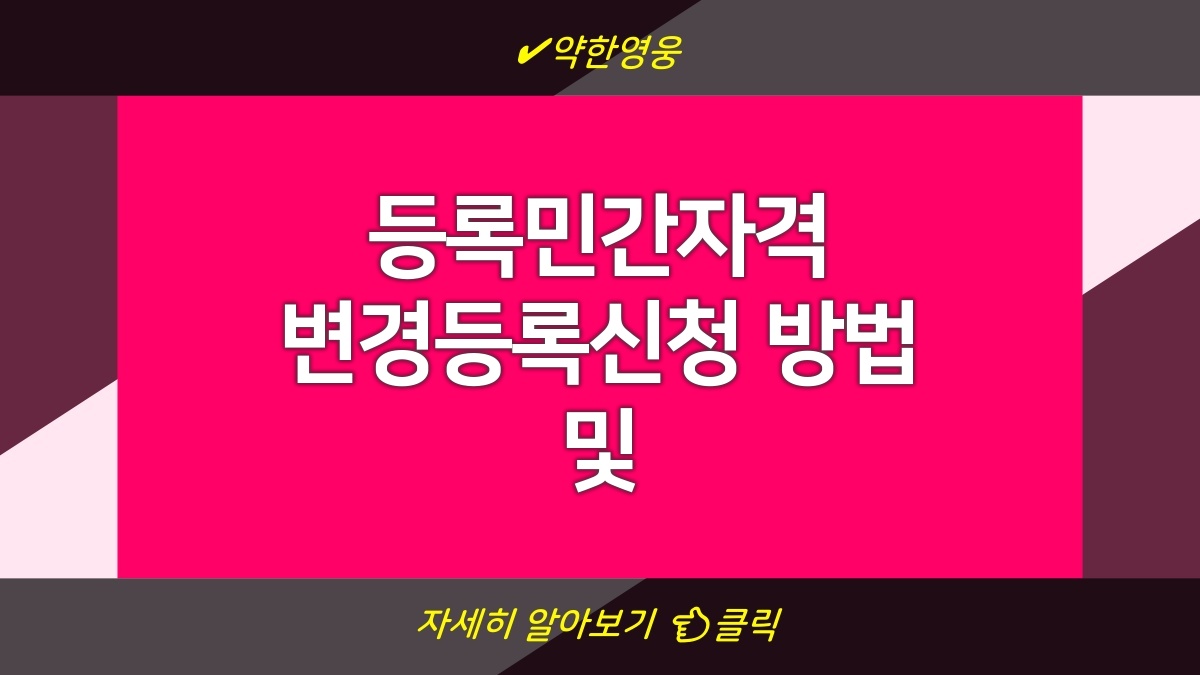 등록민간자격의 변경등록신청에 대해 알아보자. 이 절차는 자격의 유효성을 유지하고 법적인 요구사항을 충족하기 위해 반드시 필요하다. 변경 사항이 발생하면 빠른 시일 내에 신청해야 하니 주의하자. 모든 정보는 정확하게 작성해야 하며, 필요 서류도 빠짐없이 준비해야 한다. 따라서 처음 신청할 때보다 더 많은 꼼꼼함이 요구된다. 만약 이 절차를 소홀히 하면 불이익이 생길 수 있으니 신중하게 진행해야 한다. 다양한 정보를 얻고 싶으면 [여기](https://www.gov.kr/mw/AA020InfoCappView.do?HighCtgCD=A04002&CappBizCD=13420000011&tp_seq=)를 참고하자.