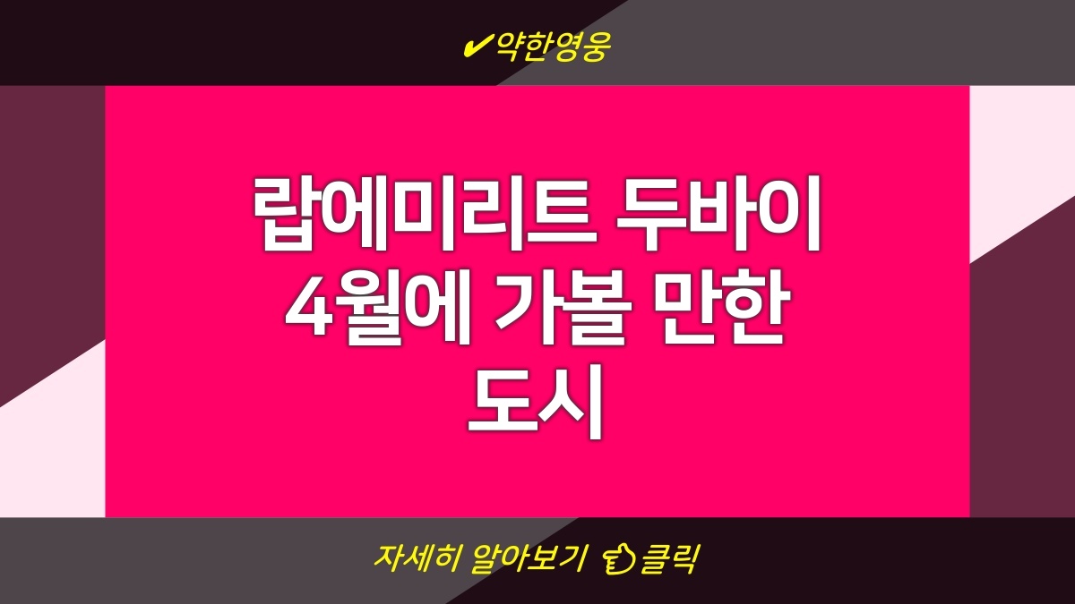 두바이는 매력적인 도시 관광지가 많아서 4월에 방문하기 딱 좋은 곳임. 현대적인 스카이 스크래퍼와 전통적인 시장이 어우러져 있어서 다양한 볼거리가 가득함. 또한, 기온이 적당해서 야외 활동하기에도 좋아. 이 시기에 꼭 가봐야 할 명소도 많고, 준비물도 깔끔히 챙기면 좋음. 대중교통도 편리하고, 맛있는 음식도 많아서 여행하기에 좋은 도시임. 소중한 추억 만들기 위해 미리 계획하는 게 중요함.