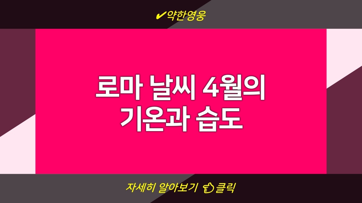 로마 4월의 기온은 변동폭이 커서 그날그날 체크해야 해. 대개 하루 동안 기온 차가 심하기 때문에, 아침에 나갈 때는 얇은 외투를 챙기는 것이 좋겠어. 그리고 습도는 보통 평균 50-60%로 쾌적해. 비 소식이 없는 날은 바람도 불고 기분이 좋지.