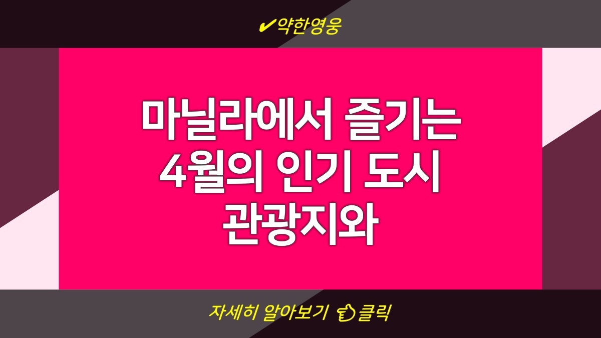 필리핀 마닐라는 따뜻한 기후와 아름다운 풍경으로 유명한 관광 명소입니다. 특히 4월은 관광이 활발해지는 시기이므로 여러 가지 즐길 거리와 볼거리가 많습니다. 이 시기에 방문할 수 있는 주요 관광지를 소개하며, 여행 준비물도 함께 안내해 드리겠습니다. 마닐라를 방문하면 다양한 문화와 역사를 체험할 수 있으며, 각종 레저 활동도 즐길 수 있습니다. 기념품 쇼핑이나 현지 음식을 맛보는 것도 큰 즐거움이 될 것입니다.