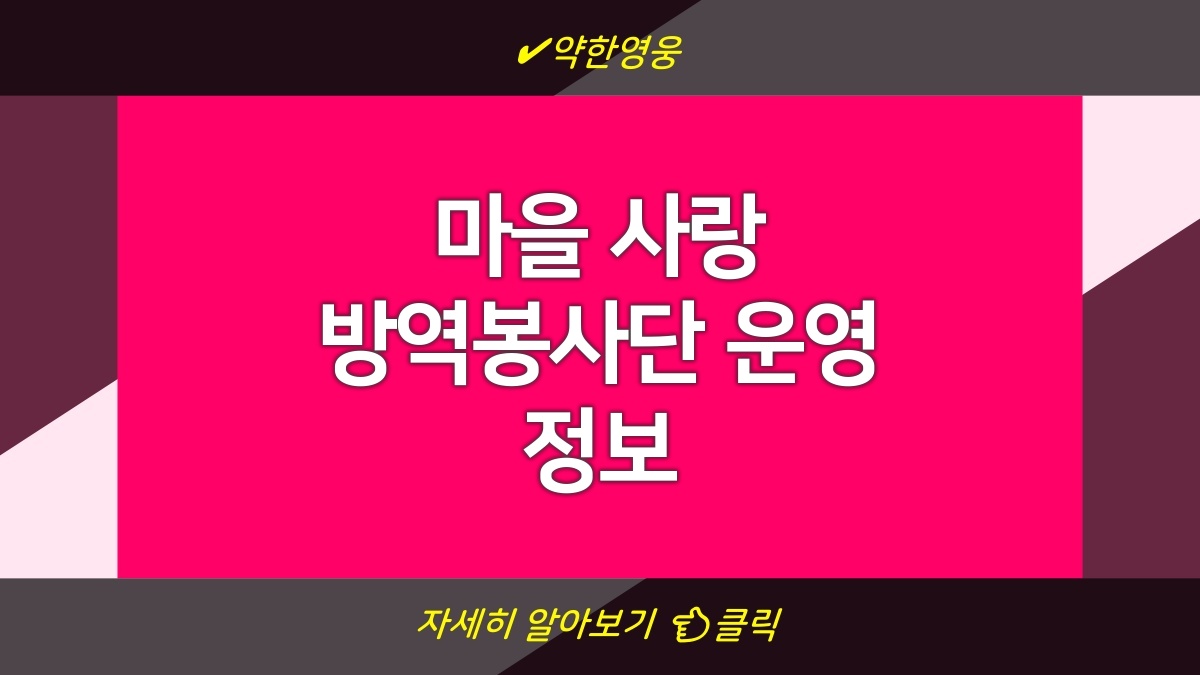 마을 사랑 방역봉사단은 안전한 지역 사회를 만들기 위해 꼭 필요한 활동이야. 예방과 협력으로 건강한 마을을 만들어 나가자고. 봉사에 참여해서 함께 우리 마을을 더 안전하게 만드는 데 함께해주면 좋겠어. 여러분의 많은 관심과 참여를 기다릴게!