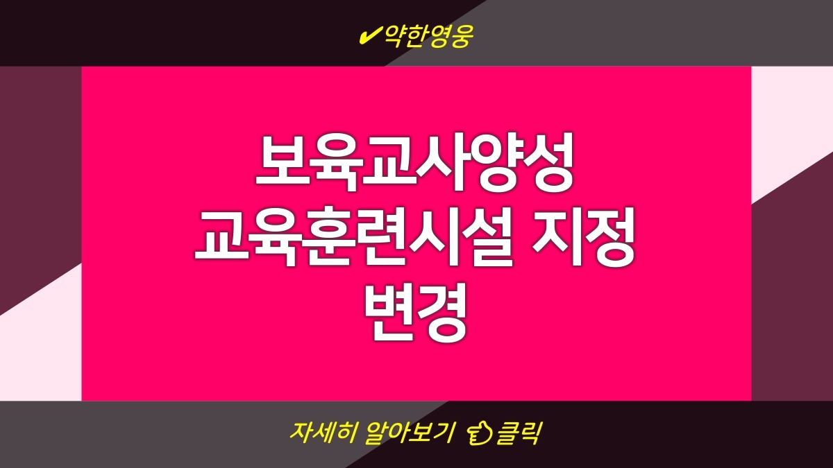 최근 보육교사양성 교육훈련시설의 지정사항이 변경되었음. 변경된 내용은 앞으로 해당 시설에서 교육훈련을 받는 모든 보육교사들에게 중요한 영향을 미칠 것임. 따라서 관련 내용을 잘 알아두면 좋을 것임. 특히 지정시설 신규 등록이나 기존 시설의 조건에 대한 변화가 있을 수 있으니 각별히 주의해야 할 듯. 이 정보는 보육교사로서의 경로를 준비하는 데 필수적이니 꼭 확인해 보길 바람. 각 지정시설의 최신 기준과 등록 방법도 확인 가능한 링크는 다음과 같음: