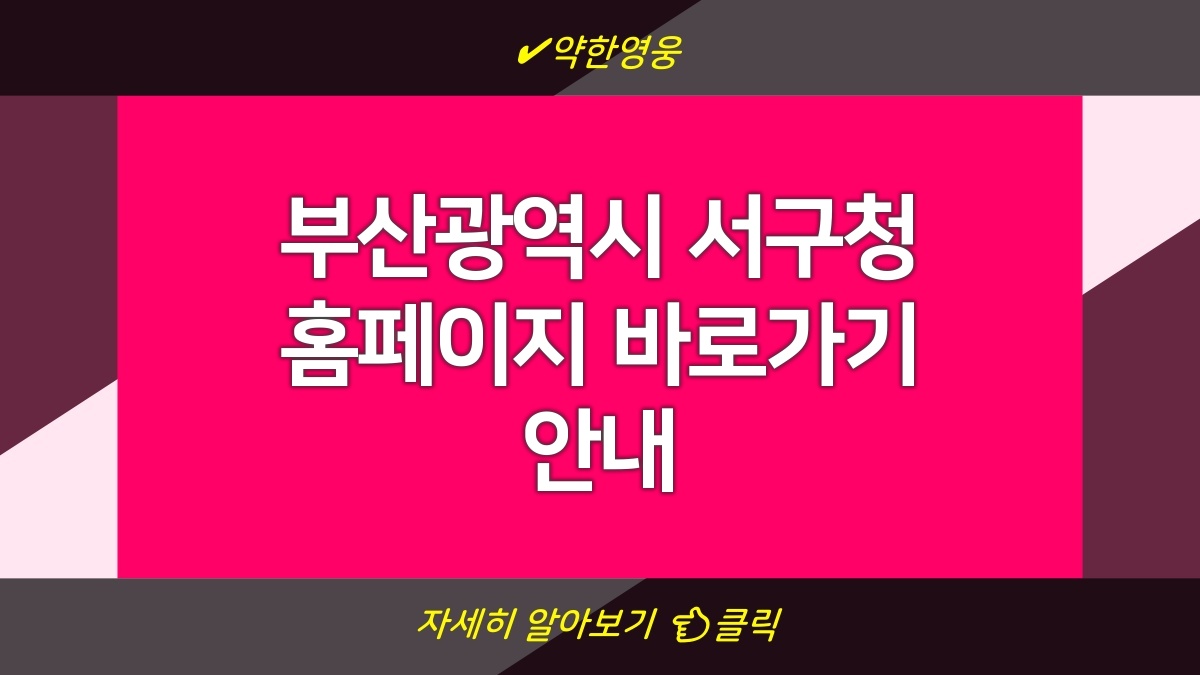 부산광역시 서구청의 공식 웹사이트가 있어. 이 곳에서 서구에 관한 다양한 정보들, 종합민원 안내, 구정 홍보를 한눈에 확인할 수 있다. 서구의 역사와 문화에 대해서도 쉽고 빠르게 접근할 수 있고, 각종 주민 민원 서비스도 온라인에서 간편히 이용 가능하다. 홈페이지에 접속하려면 여기를 클릭하면 된다. 중요한 정보들을 놓치지 않을 수 있는 기회니 꼭 방문해 보길 추천한다.