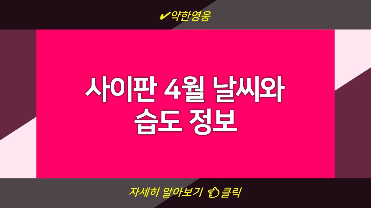 사이판의 4월 날씨는 정말 따뜻하고 습도가 높아. 대체로 4월의 평균 기온은 25도에서 30도 사이로 유지돼. 이때 습도가 70%를 넘기도 하니까, 덥고 기분이 좋지 않을 수 있어. 그러니까 실시간 날씨를 체크할 수 있는 사이트를 이용하면 좋아. 이번 달에는 특히 비가 올 확률도 있으니까 날씨 앱을 자주 확인해보는 게 좋을 듯. 너무 더우면 외출할 때 주의해야 해.