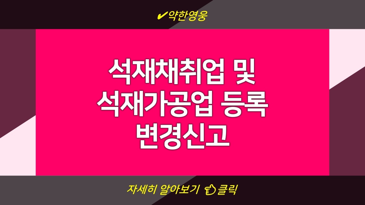 석재채취업과 석재가공업 운영을 위해 등록사항 변경신고가 필요하다. 이 과정은 업계에 필수적인 절차라서, 절대 빼먹지 말아야 함. 특히 사업 확장이나 변경 시에는 신속하게 신고해야만 법적 문제를 피할 수 있음. 절차를 모르거나 복잡하게 느껴질 수 있지만, 정확한 정보만 있으면 어렵지 않게 진행할 수 있음. 필요한 서류와 절차를 잘 이해하고 준비하는 것이 중요함. 이 글을 통해 자세한 내용을 알아보자.