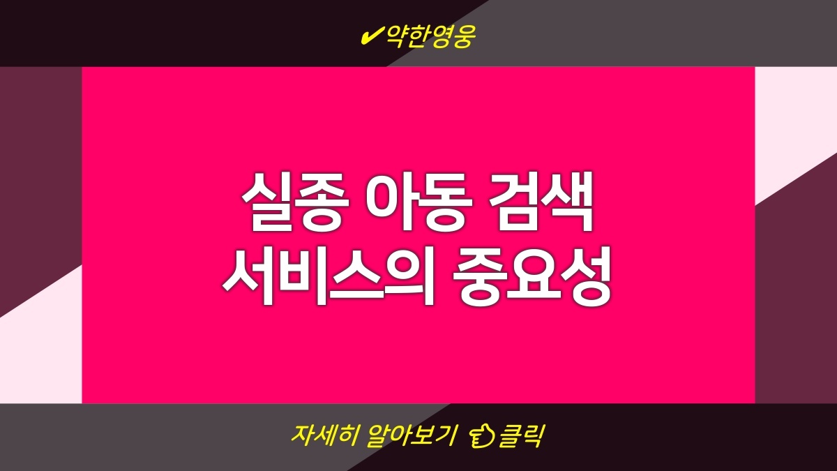 실종 아동 검색 서비스는 아이들의 안전을 지키기 위해 꼭 필요함. 서비스를 통해 실종 아동에 대한 정보를 빠르게 확인하고 공유할 수 있음. 다양한 플랫폼에서 접근할 수 있어서 더 많은 사람들이 참여할 수 있음. 각종 사건 사고가 발생할 때 신속하게 행동하는 게 중요함. 우리 모두가 이러한 시스템에 참여하면 아동들의 안전이 더 잘 지켜질 수 있음. 미리 알고 준비하는 자세가 필요함.
