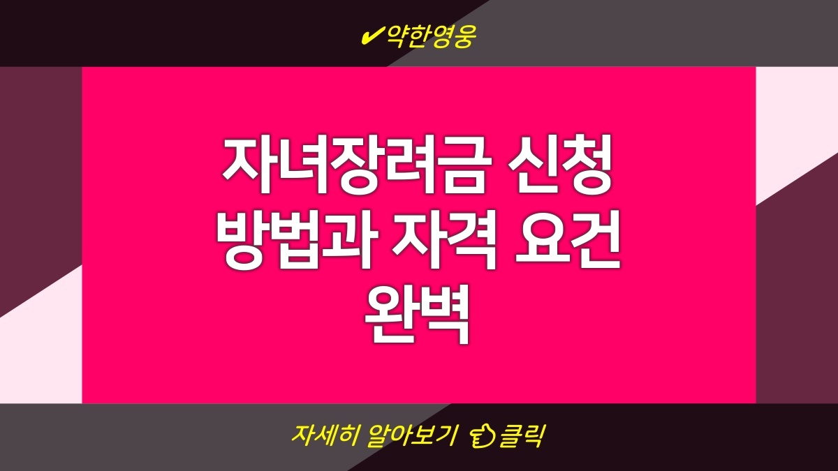 자녀장려금은 저소득 가구의 자녀 양육을 지원하기 위해 정부에서 지급하는 금액이야. 부모의 소득 수준과 자녀의 연령에 따라 신청할 수 있는 금액이 달라지니까 주의해야 해. 정부 정책이 자주 바뀔 수 있으니 최신 정보를 확인하는 게 중요해. 그래서 신청 방법이나 조건에 대해 자세히 알아볼 필요가 있어. 이번 포스트에서 자녀장려금의 조건과 신청 방법에 대해 모두 정리해볼게. 절대로 놓치지 말고 체크해봐.