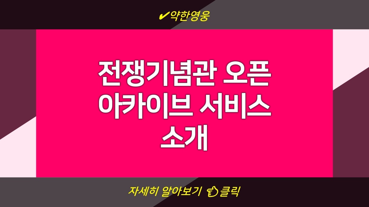 전쟁기념관 오픈 아카이브 서비스는 국내 전쟁과 관련된 역사적 자료들을 제공합니다. 이 서비스는 유물, 문서, 사진 등을 통해 비치된 오프라인 유물들을 온라인에서 쉽게 접근할 수 있게 만들었음. 이용자는 단순한 검색을 통해 원하는 정보를 빠르게 찾아볼 수 있음. 또한 다양한 전시와 학술 강연 등 온라인 콘텐츠도 제공돼 역사적 의미를 쉽게 이해할 수 있음.