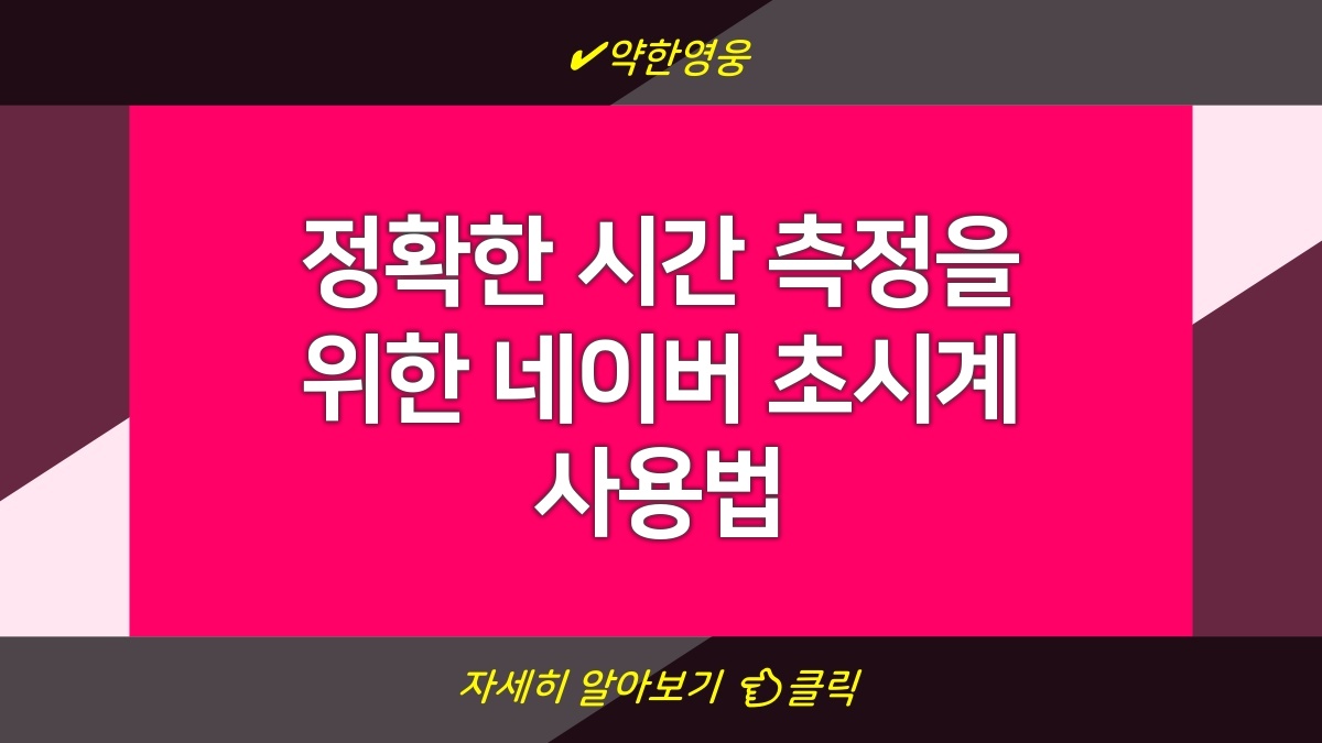 네이버 초시계는 간단하면서도 효율적인 시간 측정 도구야. 초 단위로 정확하게 시간을 측정할 수 있어서 다양한 분야에서 활용 가능해. 웹 기반이라 접근성이 좋고, 무료로 사용할 수 있다는 점에서 많은 사용자들에게 사랑받고 있어. 시간을 관리하는 데 유용한 도구니, 꼭 한번 사용해보기를 추천해. 초시계의 활용으로 더욱 효율적인 일상이 될 수 있을 거야.