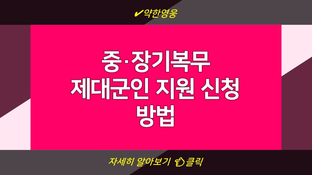 중·장기복무 제대군인지원 신청은 군 복무를 마친 이들에게 지원하는 제도야. 이 지원 프로그램은 제대 이후 안정적인 생활과 취업을 위한 다양한 지원을 제공하지. 주로 취업알선, 주거지원, 교육훈련 등이 포함되어 있어. 이보다 더 궁금한 점이 있다면 아래 정보를 확인해보는 게 좋을 것 같아.