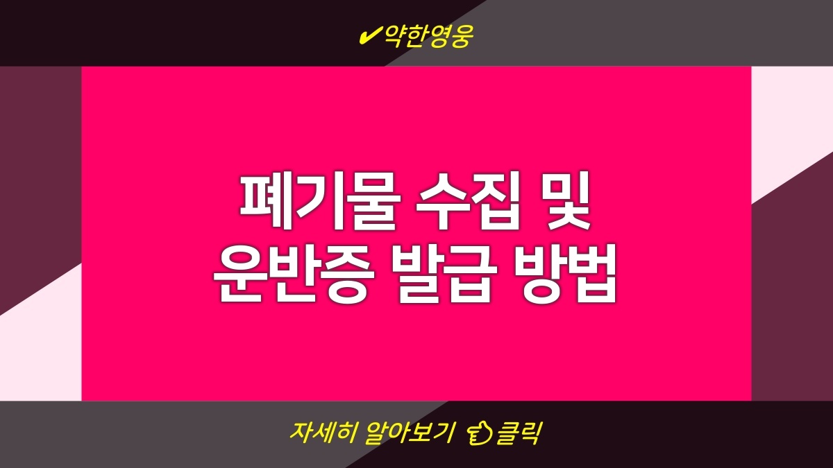 폐기물 수집과 운반증 발급이 필요한 경우 많지 않나. 특히 사업장에서 발생하는 폐기물은 법적으로 적절하게 처리해야 하니까. 이와 관련된 발급 절차를 잘 알고 있으면 혼란을 줄일 수 있다. 여기서는 폐기물 수집과 운반증 발급에 관한 모든 정보를 정리했으니, 참고하면 좋을 듯. 발급받는 방법에 대한 내용이라서 필요한 서류와 주의사항을 미리 준비하길 바란다.