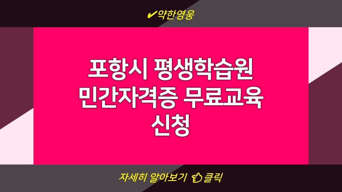 포항시에서 제공하는 평생학습원 민간자격증 무료교육 상시 신청 가능하단다. 다양한 교육과정을 통해 자격증 취득할 수 있는 기회를 제공하고 있어. 특히, 교육비가 무료라서 경제적인 부담 없이 수강할 수 있는 장점이 크지. 포항시민이면 누구나 참여할 수 있으니 관심 있는 사람은 꼭 신청해보길 바랄게. 수강신청은 공식 홈페이지에서 가능하니까 아래 링크로 가보면 좋을 듯. 링크는 여기서 확인해봐.