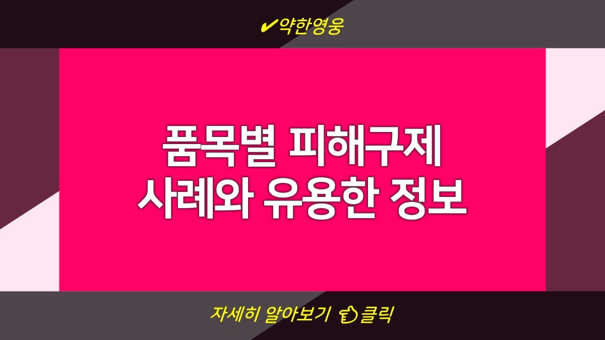 품목별 피해구제는 여러 가지 상황에서 발생할 수 있는 문제를 해결하기 위해 마련된 시스템임. 이런 시스템은 소비자가 자신의 권리를 보호할 수 있도록 도와주지. 피해를 입은 경우, 어떻게 대처해야 하는지에 대한 정보가 필요할 때가 많음. 그래서 정부에서는 다양한 피해구제 사례를 제공하고 있음. 이 정보는 소비자들에게 큰 도움이 될 수 있을 것 같음. 필요 시, 해당 링크를 통해 더 자세한 사항을 확인하는 것도 좋겠지. 특히 유의할 점은 피해구제의 절차와 기준이 특정 품목에 따라 다르니까 잘 알아두면 좋을 듯.