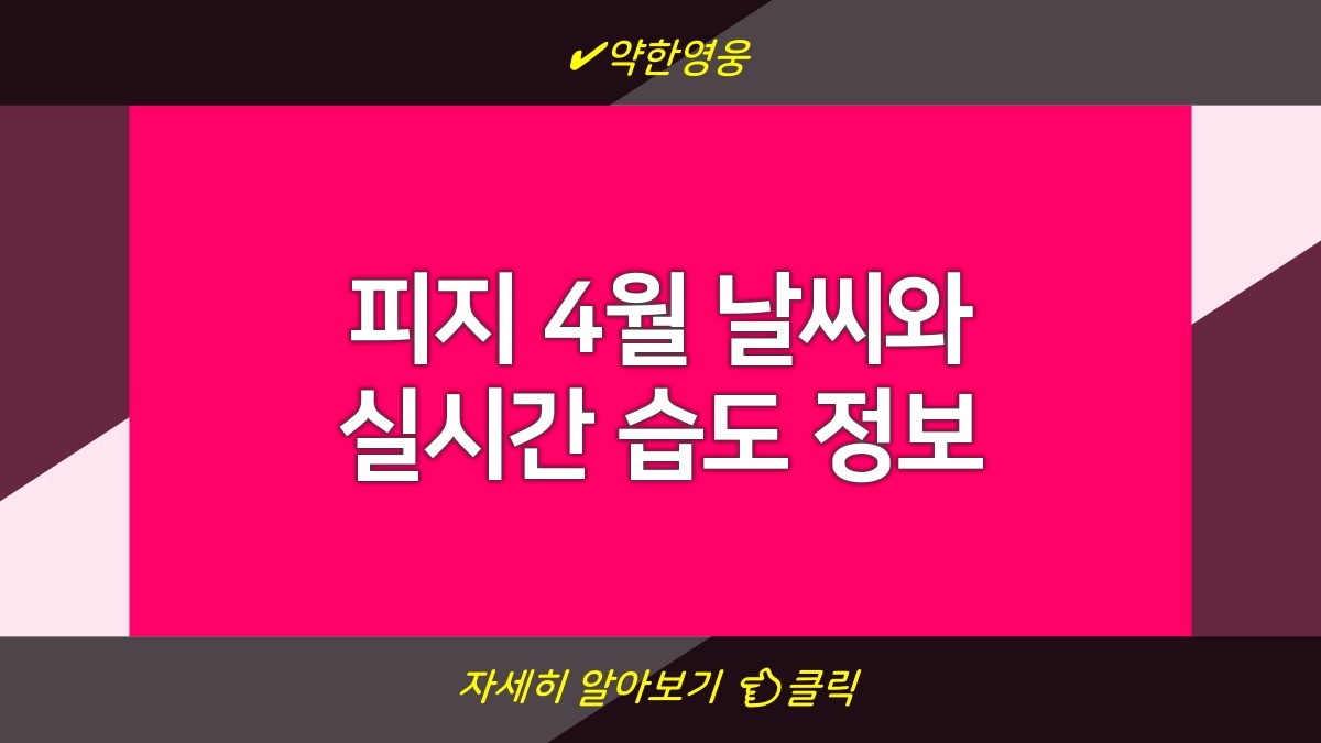 피지는 아름다운 자연과 따뜻한 날씨로 유명한 곳이야. 4월의 날씨는 대체로 맑고 쾌적해, 여행하기 딱 좋은 시기지. 습도는 약간 높은 편이니까, 다시 말해 바람의 움직임이 없으면 꽤 더울 수도 있어. 바다와 가까운 곳은 기온이 조금 낮고 습도는 상대적으로 높으니, 이를 고려해 옷차림을 준비해야 해. 피지에서의 즐거운 시간을 보내기 위해서 실시간으로 날씨와 습도 정보를 체크하는 게 필요해. 방문 전에 최신 정보를 한 번 확인해 보길 추천할게.