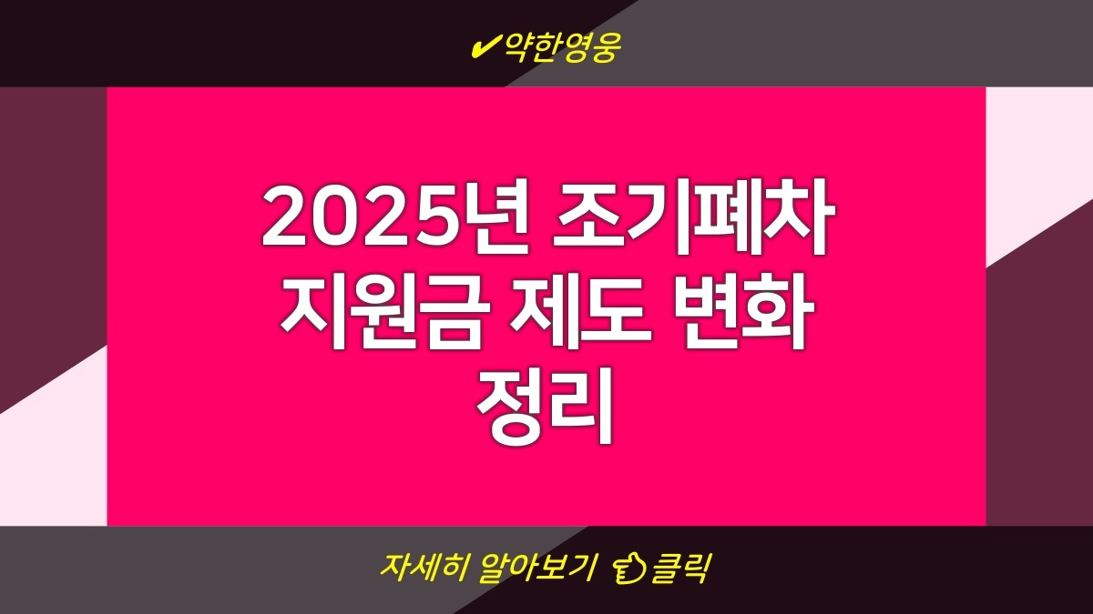 조기폐차 지원금 제도가 2025년에 변경된다. 이 변경 사항들을 잘 알면 혜택을 놓치지 않을 수 있다. 환경을 생각하는 사람이라면 한 번쯤은 고민해봤을 법한 조기폐차 지원금. 지원금을 통해 효율 좋은 차량으로 바꾸는 것이 좋다. 변화된 내용을 제대로 체크해보는 게 중요하다. 별로 복잡하지 않은 것을 어려운 것처럼 설명할 필요도 없다. 꼭 필요한 정보만 깔끔하게 정리할게.