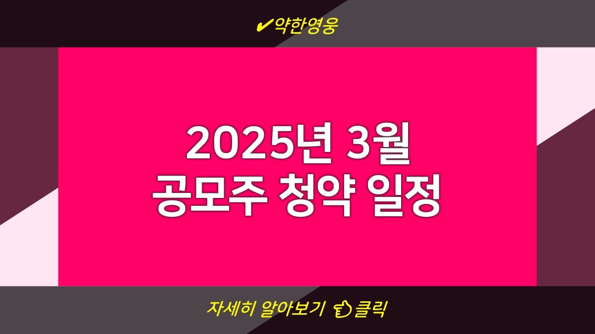 2025년 3월에 진행되는 공모주 청약 일정에 대해 정리해봤다. 주식 투자에 관심 있는 사람이라면 이번 기회를 놓치지 말고 체크해보자. 청약 일정의 상세 정보는 물론, 각 공모주에 대한 특징과 주의 사항까지 살펴보면 도움이 될 거야. 이런 정보를 미리 알고 투자 결정을 내리면 실패 확률을 줄일 수 있다. 공모주는 워낙 많은 사람들이 원하는 만큼 기본적인 것도 잘 알아둬야 해.
