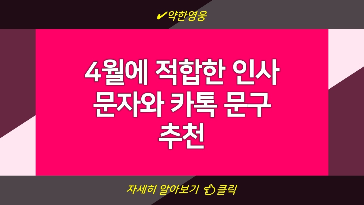 4월은 새 생명과 따뜻함이 가득한 계절로, 인사 문자나 카카오톡 메시지를 보내기에 좋은 시점입니다. 고마운 마음이나 따뜻한 인사를 전하고 싶다면, 짧지만 감동적인 메시지를 생각해보세요. 예를 들어, "새로운 시작의 4월, 당신의 모든 일이 잘되길 바랍니다!"라는 문구로 상대방에게 긍정적인 에너지를 전달할 수 있습니다. 이렇게 4월에 어울리는 메시지를 적절히 활용한다면, 소중한 인연을 더욱 깊이 있게 이어갈 수 있습니다.